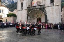 Vanjska proslava blagdana svetog Tripuna, zaštitnika Kotora i Kotorske biskupije, održana je danas u Kotoru uz sudjelovanje brojnih vjernika i hodočasnika iz susjednih zemalja. Ispred Glavnih gradskih vrata upriličen je svečani doček podružnica Bokeljske mornarice iz Tivta i Herceg Novog te Hrvatskih bratovština Bokeljska mornarica 809 Zagreb, Split, Rijeka i Pula uz raport i predaju zastave. Nakon toga formiran je odred Bokeljske mornarice koji se, u pratnji gradskih glazbi Kotora i Tivta, Puhačkog orkestra iz Marije Bistrice te Puhačkog orkestra Fužine, uputio prema katedrali svetog Tripuna.