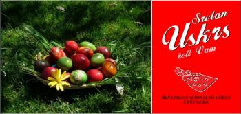 ,,Povodom Uskrsa, najvećega kršćanskog blagdana koji simbolizira Božju i čovjekovu pobjedu nad smrću, grijehom i zlom te iznova jača našu vjeru u vječni život i nadu u nove radosne početke , Hrvatsko nacionalno vijeće Crne Gore upućuje srdačne čestitke svim kršćanima, sa željom da radost dolaska Uskrsa podijele s najbližima, u zdravlju, obilju blagoslova i veselju."