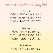 Hrvatska nastava namijenjena je svoj djeci koja žele učiti hrvatski jezik i upoznati hrvatsku kulturu, a posebno onima kojima je hrvatski obiteljski jezik. U Boki kotorskoj održava se 18. godinu zaredom.
