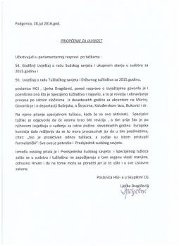 poslanica HGI-ja, Ljerka Dragičević, pored rasprave o izvještajima, govorila je i poentirala ono što je Specijalno tužilaštvo i najavilo, a to je revizija i obnavljanje procesa po ratnim zločinima iz devedesetih godina s akcentom na Morinj. Govorila je i o deportaciji Bošnjaka, o Štrpcima, Kaluđerskom lazu, Bukovici i dr.