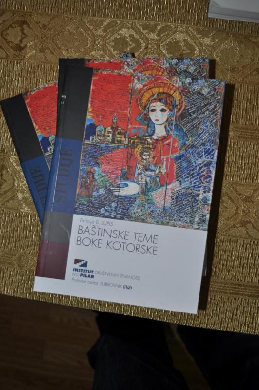 Donja Lastva 24. rujna 2013. (Radio Dux) - „Baštinske teme Boke Kotorske" naziv je knjige autora dr. Vinicija B. Lupisa, koja je prezentirana u ponedeljak, 23 rujna, u Domu kulture „Josip Marković" u Donjoj Lastvi.Knjiga je objavljena u nakladi „Gospe od Škrpjela" i Instituta „Ivo Pilar", a prvi puta je predstavljena publici ljetos u crkvi na svetilištu „Gospa od Škrpjela".O knjizi su govorili Ilija Janović-predsjednik Opštinskog odbora HGI i autor, dok je moderator večeri bila profesorica Ana Šarčević."Zahvaljujem doktoru Viniciju Lupisu na njegovom radu i bilježenju ovih fakata, kako povijesnih, tako i kulturnih, i dogadjaja koji ostavlja za neka naša buduća pokoljenja."Ono što su naši djedi stvorili, ono što su naši oci nastavili raditi i ostavili nama da kolko tolko sačuvamo i zapišemo uradio je dr. Vinicije Lupis znanstvenik istraživač i predsjednika Instituta društvenih znanosti „Ivo Pilar", podružnica Dubrovnik.U ovoj knjizi Lupis kroz autorske zapise obradio je zlatarstvo, kiparstvo, slikarstvo, arhitekturu, književnosti i veoma interesantne i značajne eseje koje je uspio sakupiti" – kazao je Janović."Danas kada vi sagledate cjelovitost baštine morate biti objektivni. Baština se sagledava u svom, ne trenutnom političkom trenutku, nego u onom razmišljanju vremena kad je nastala. Svakako pitanje autocenzure kod Hrvata jeste da sve što je van granica i medja se zaboravlja. Kniga jest odgovor na tu autocenzuru. Najveća opasnost danas je u otimanju memorije hrvatske baštine.Ova je knjiga prilog poštovanju nacionalne baštinske cjelovitosti i sagledavanje Boke kotorske kao integralnog hrvatskog kulturnog i duhovnog prostora, koji se sada nalazi izvan granica Hrvatske, poštujući pri tom državu Crna Goru koja je hrvatskoj manjini obezbijedila sva prava " - kazao je dr. Vinicije Lupis.Knjiga je kapitalno djelo koje obrađuje dvaesetogodišnje Lupisovo istraživanje kulturne baštine Crne Gore, posebno Hrvatske kulturne baštine. Knjiga je riznica povjesti, povjesti arheologije, povjesti književnosti i zbirke eseja.Recezenti knjige su eminenti stručnjaci dekan likovne akademije u Splitu dr. sc. Branko Matulić i dr.sc. Hrvojka Mihanović Salopek.Knjiga "Baštinske teme Boke kotorske" izašla je u nakladi "Gospa od Škrpjela" i Instituta društvenih znanosti "Ivo Pilar" na 436 strana, obrađuje teme iz Bokeljske kulturne baštine sa 160 priloga i fotografija.O manjim mjestima Boke kotorske se manje piše i zna tako da posebna vrijednost ove knjge to što je autor značajni dio posvetio Lepetanima, Gornjoj i Donjoj Lastvi, Tivtu, ne zaobilazi Perast i Kotor ali posebno je značajno što su neke teme po prvi puta obrađene i opisane.U muzičkom dijelu programa nastupila je klapa Veterani Vazda mladi.Na kraju književne večeri mještani su uručili poklone kao izraz zahvalnosti za sve što je uradio za župu i njih osobno, lastovskom župniku don Dejanu Turzi, koji odlazi na službu u Sutomore.U ime Hrvatskoog nacionalnog vijeća Crne Gore, Predsjednik Zvonimir Deković župniku don Dejanu Turzi uručio je ček na 2000€ kao izraz zahvalnosti na vjerničkoj, kulturnoj, ekumenskoj, nacionalnoj razini tijekom obnašanja službe upravitelja župe Sveti Roko u Donjoj Lastvi. Tijekom svoga mandata poduzeo je niz akcija od kojih su neke snažno doprinjele afirmaciji naše vjerničke i etničke samobitnosti. Posebno mu se zahvaljujemo na svemu što je uradio prilikom obilježavanja 600-te obljetnice crkve Blažene djevice Marije u Gornjoj Lastvi- kazao je Deković.