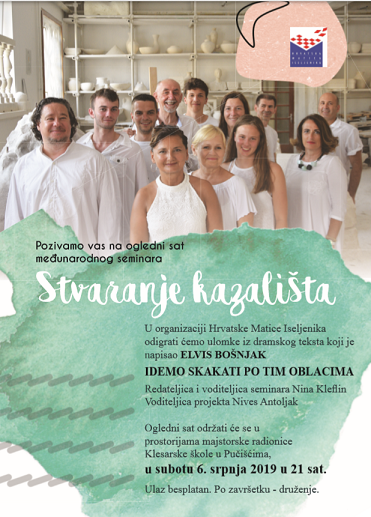 Oglednim satom 6. je srpnja završen 21. seminar Hrvatske matice iseljenika Stvaranje Kazališta. Redateljica i stručna voditeljica Nina Kleflin povela je polaznike svojim umijećem i znanjem, u magičnom ambijentu majstorske radionice Klesarske škole u Pučišćima , na „skakanje po oblacima“. Polaznici se vraćaju kući u Argentinu, BiH, Crnu Goru, Italiju, Nizozemsku, SAD i Vojvodinu, obogaćeni znanjem i iskustvom koje će prenijeti, svatko na svoj način, u sredinama u kojima žive i rade. Radit će i dalje predano na našem zajedničkom cilju – očuvanju hrvatskog jezika i kulture.